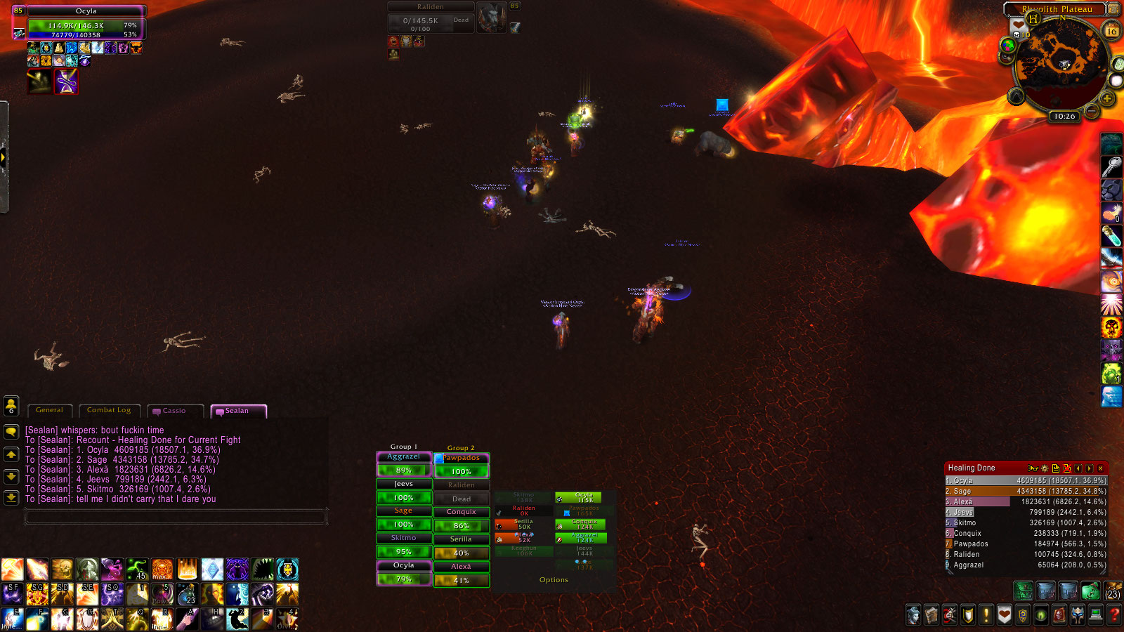 This raid weekend, we did not have Holybo for some reason so we brought in a holy paladin. We got down heroic Shannox and Rhyolith, but I had to make special efforts to help on healing Con during Shannox, and put out 18k heals on Rhyo. I joked to Sealan, who was teasing me about being carried by Sage, that I ruled that fight.