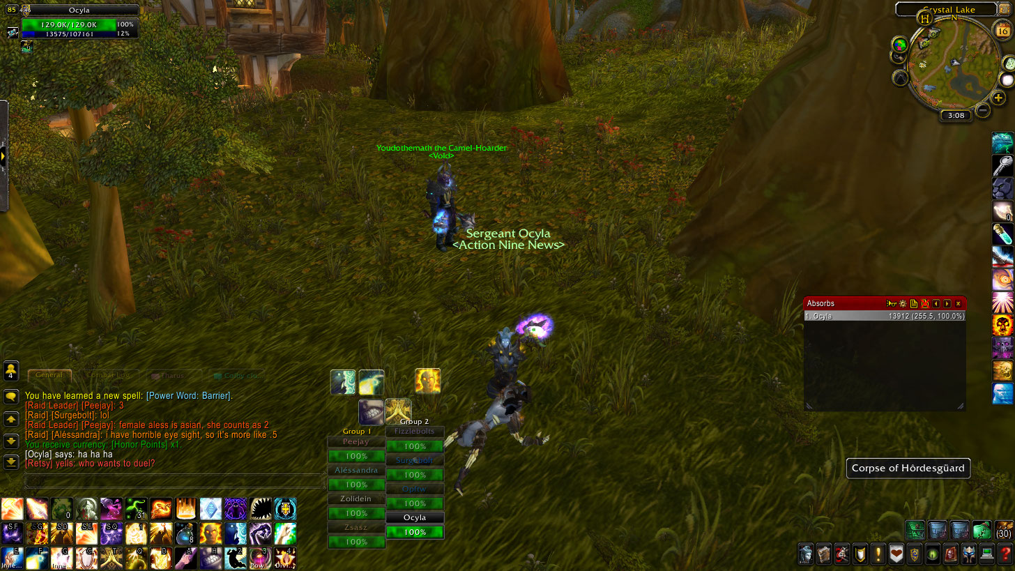 Later on there was a group of horde messing around in Goldshire, so I went to play. I sat on MANY dead horde, but my favorite was this rogue, Hordesguard.