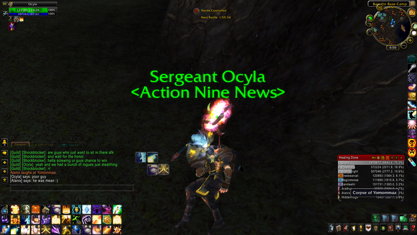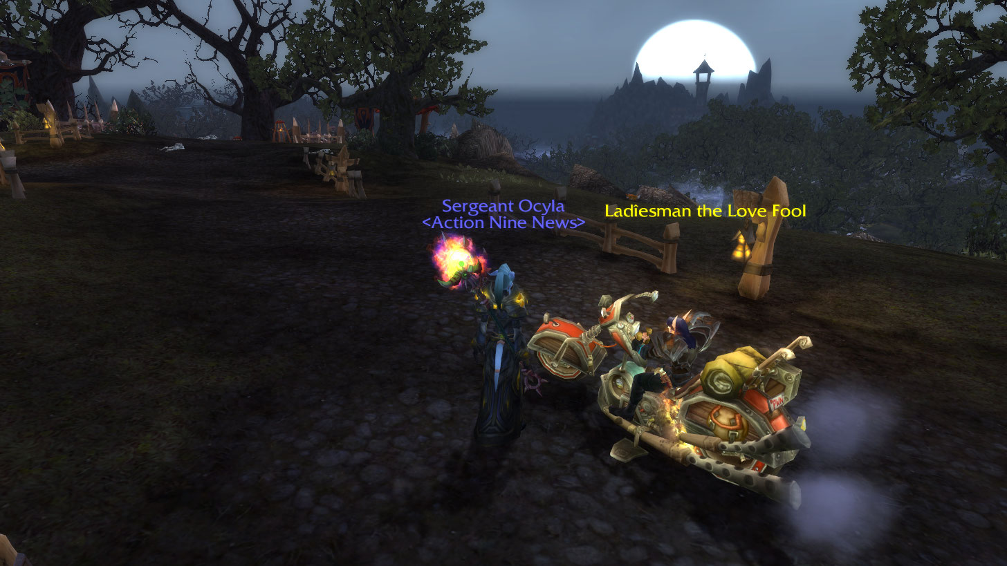 After it ended I hopped down there to see him nearly kill a DK, but I grabbed him with another MC and tossed him into the water, barely saving the alliance person. We both dropped down and he sapped the DK all the way back to the Alliance camp, where he again tried to kill the dk. But, I was annoying and yanked another MC and walked him to the guards, where he died.