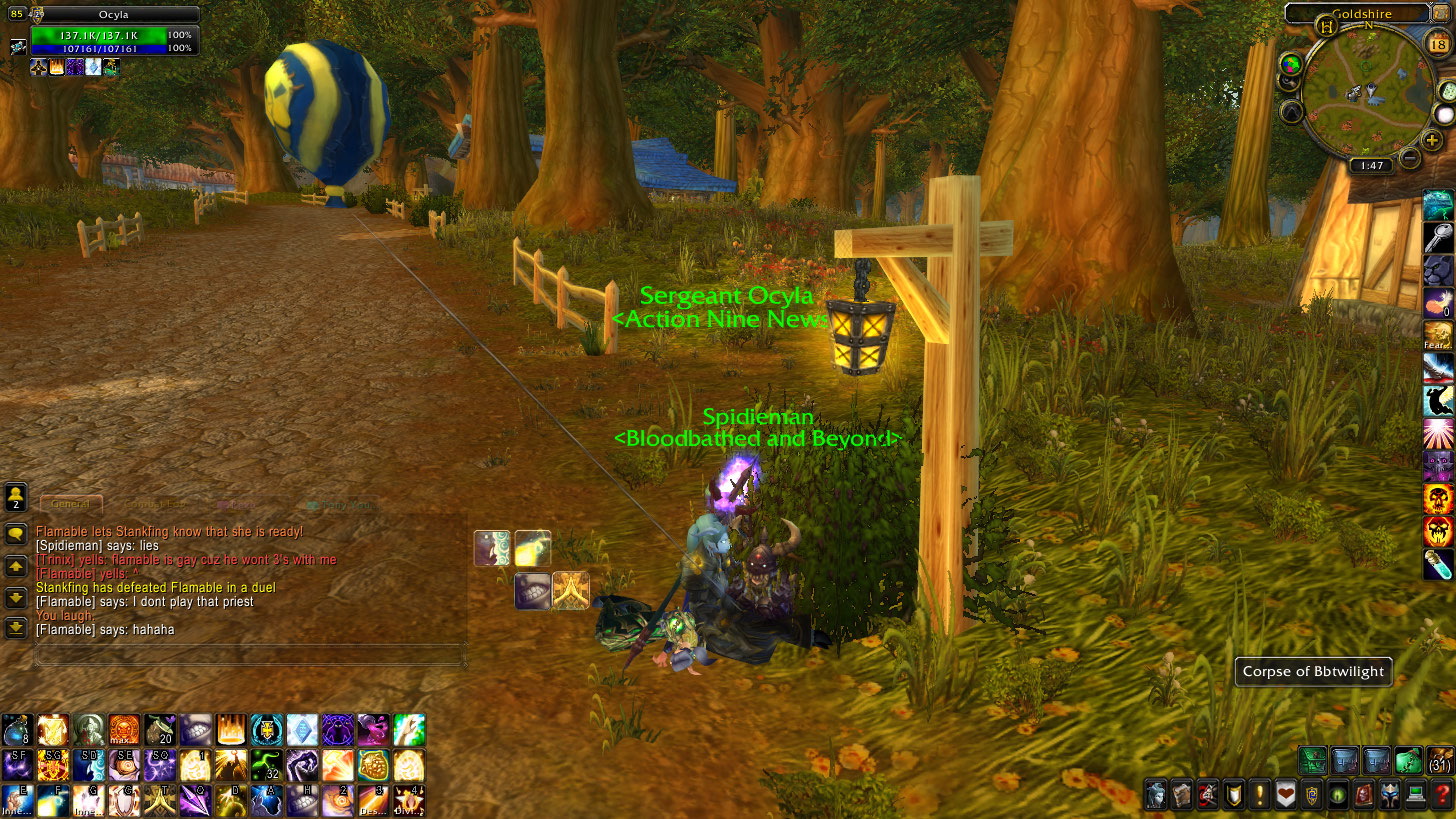 For some reason Bbqtwilight was harrassing people in Goldshire, and I caught her in the middle of hearthing out.