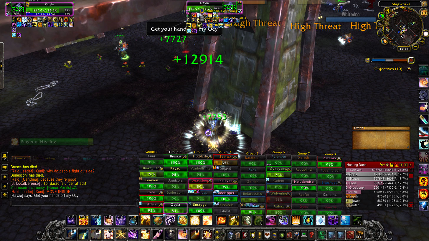 We had a little joke at Slags when everyone left us there, and I said “we got this” then clarified to mean that “by got this I mean, we’ll both get it in the ass in a few minutes” then being a typical rogue, he joked and said it would be just me because he’d vanish and leave my ass there. Rogues ah, love them. He didn’t though, and when 20 horde rolled in and kicked out ass he died too, but claimed it was only because he was DoT’d and didn’t have cloak up. Suuure. But I have a new rogue fan, it looks like, so I’m happy.