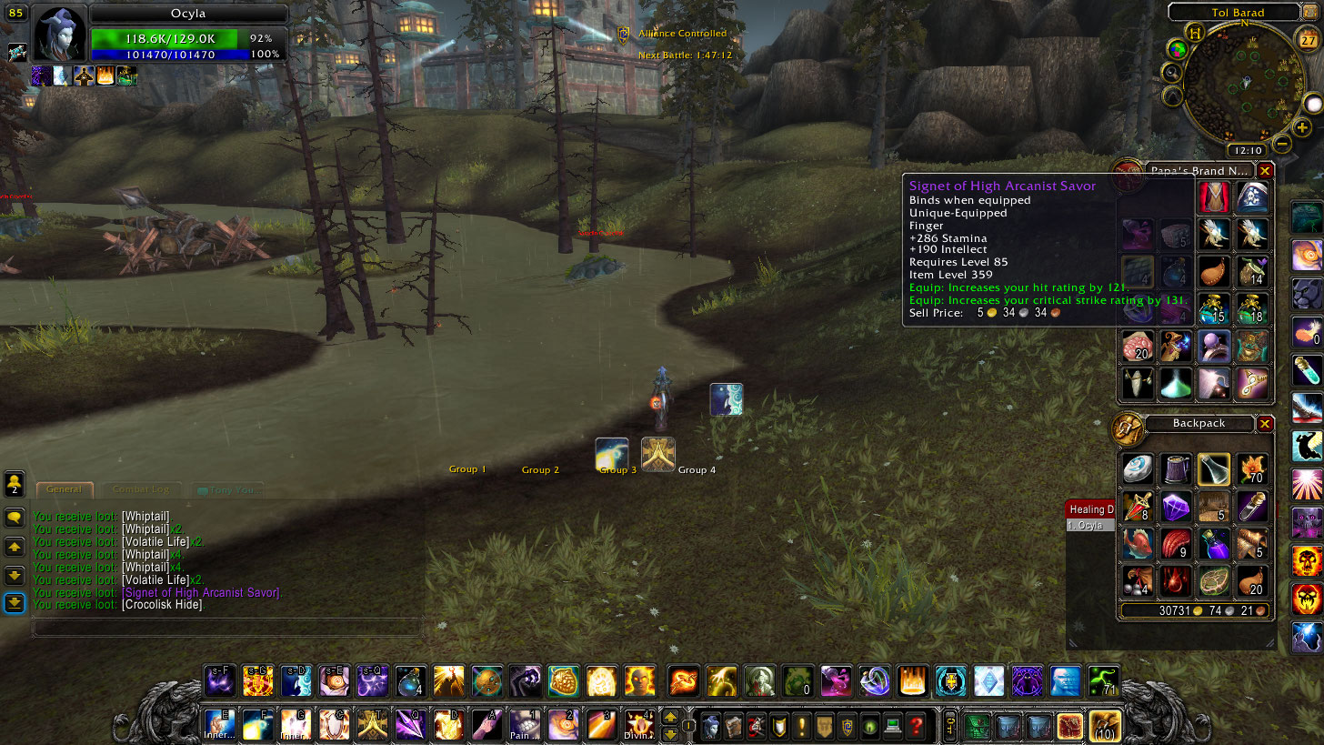 But I saw something more interesting which was horde, including Zukk and Ukko all flagged. I tried to throw Ukko off a ledge and ended up helping kill him, , but got killed when he blew me off the edge way into Fatigues-ville. Came back later and MC’d at least one person off the side and got so preoccupied messing with horde that I haven’t finished that spot yet. Ladiesman reminded me that TB was on and they were missing me, so I went to that and helped win it. A new BH raid is out but I didn’t have time to try it.