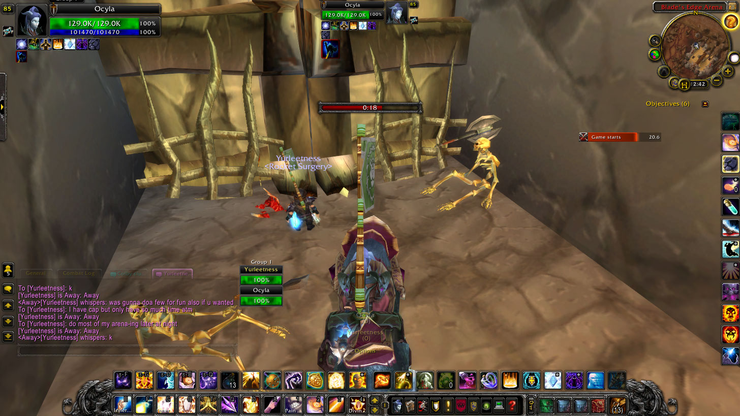 I had always been curious what it would be like to run arena with Rayslayz on his rogue on Alliance, and I found out today. It sucks. He asked me to run a few matches I said sure, we set up a team and ran first against a frost dk and a feral druid. We lost, and I didn’t see either person we fought against take any considerable damage. I got beat down pretty hard and died after I had to use all my cd’s.