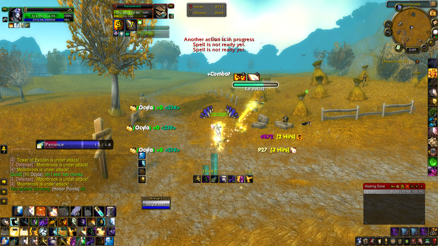 and this last one was fun because the monk landed on top of the tower on the shacks in Moonbrook, I landed and feared him, and this is where he ended up. He literally vanished from my view soon as I feared.