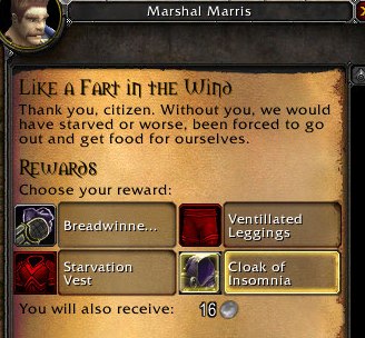 So, putting a few days together since I’ve been slacking. First a few quests that made me laugh again