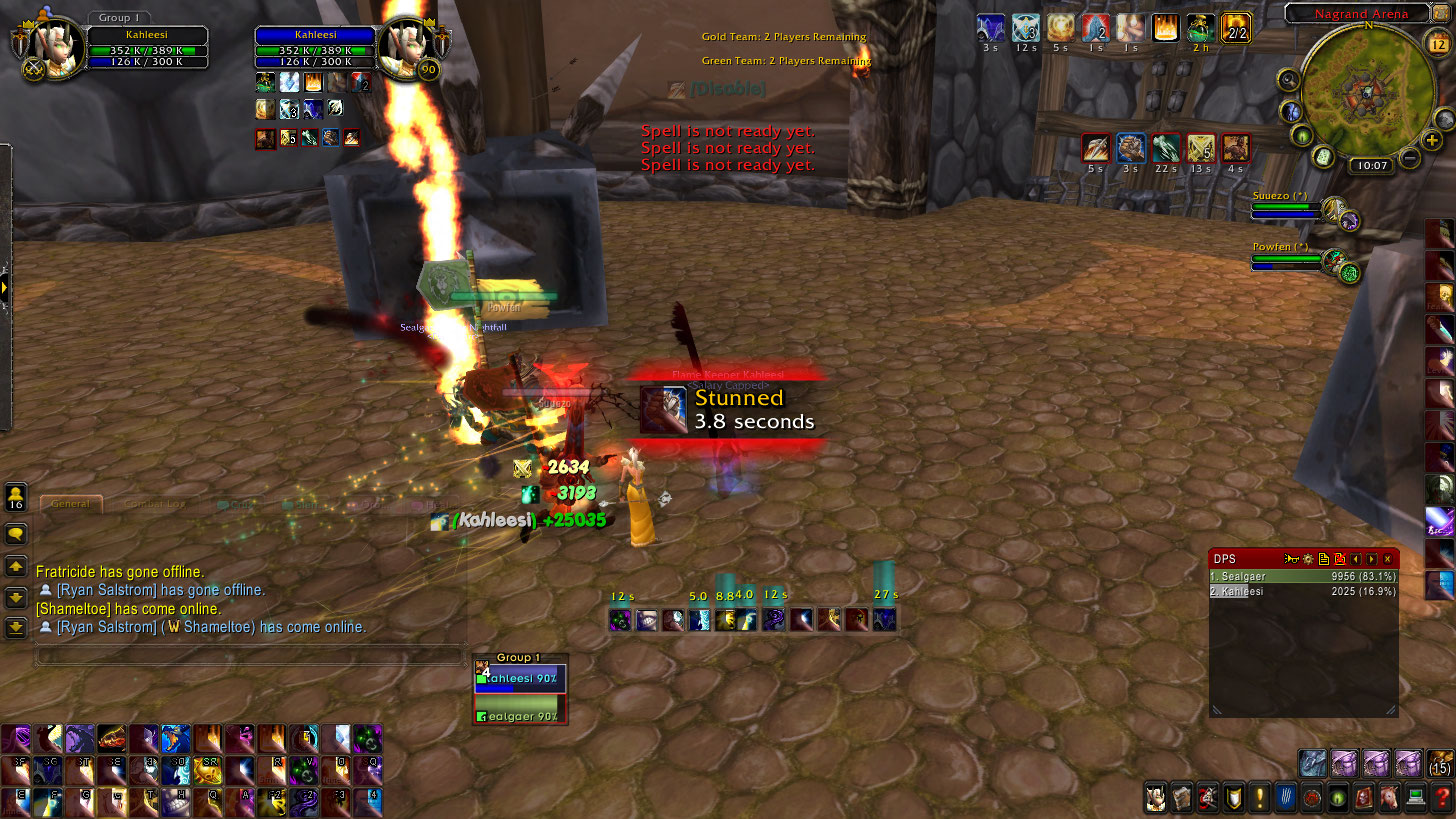 I did 2’s with Deacon, the warrior who sorta recruited me over to Bleeding Hollow on my druid, into the Alliance Vanguard guild. They were the ones who had a few people come to our Stormpike Militia games. Which… huh. Don’t know if I explained that here. So first of all, got the Hot Streak achievement.